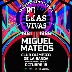 Miguel Mateos se presentará el sábado 18 de octubre de 2025 en el Club Ciclista Olímpico La Banda, en Santiago del Estero, como parte de la celebración de los 40 años de “Rockas Vivas”.